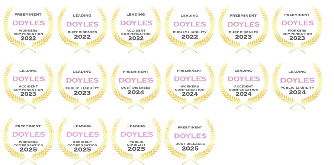 Listed in Doyles Guide as a recommended, leading and pre-eminent lawyer in workers compensation, motor vehicle, public liability and dust diseases litigation since the inception of Doyle’s Guide and in every year which is a peer nominated recognition